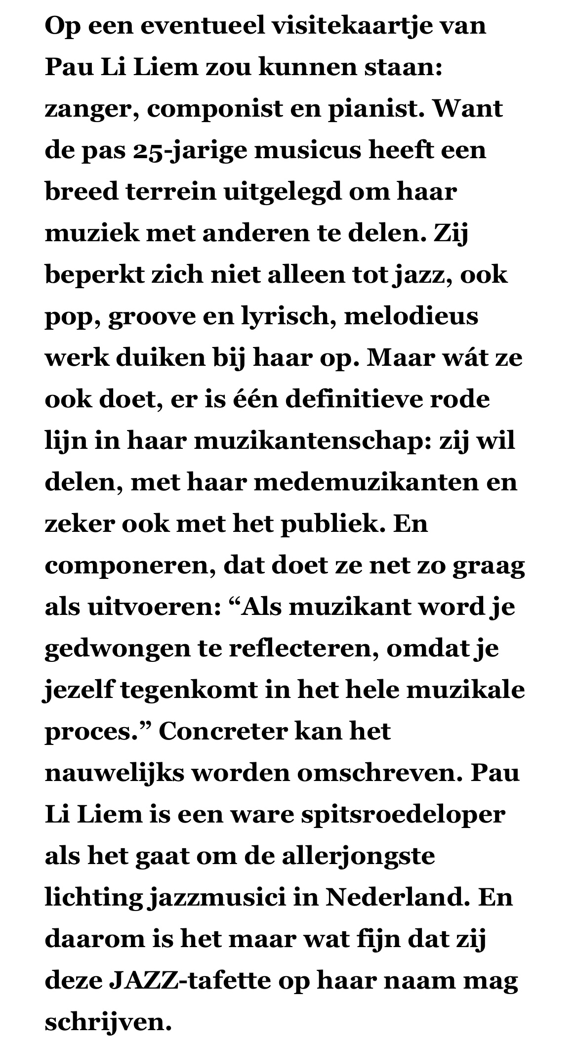 Gallery No One Knows - photo by YANi No One Knows - photo by YANi photo by Claudia Hansen photo by Karen van Gilst photo by Karen van Gilst photo by Karen van Gilst photo by Karen van Gilst photo by Karen van Gilst photo by Karen van Gilst No One Knows (single) - 26-01-2024 photo by YANi design by Paul Postma, Marjolein & Geert Gratama Pau Li Liem, Harmen Fraanje, Pascal Vermeer photo by Karen van Gilst Pau Li Liem photo by YANi Pau Li Liem - No One Knows photo by YANi 07-11-2022 Nyala - November Music 07-11-2022 Nyala - November Music 24-07-2022 Nyala - Mittelfest, Italy 24-07-2022 Nyala - Mittelfest, Italy 24-07-2022 Nyala - Mittelfest, Italy 20-05-2022 Nyala - Willem II Toonzaal 20-05-2022 Nyala - Willem II Toonzaal 20-05-2022 Nyala - Willem II Toonzaal 01-05-2022 Nyala - Roode Bioscoop, Amarte Studio Concerts 01-05-2022 Nyala - Roode Bioscoop, Amarte Studio Concerts Nyala Penny 17-09-2022 Penny - Make It Jazz festival (photo by Stefan den Engelsen) Penny 15-10-2021 Carte Blanche, Sound of Europe Festival - Pau Li Liem, Harmen Fraanje & Pascal Vermeer 15-10-2021 Carte Blanche, Sound of Europe Festival - Pau Li Liem, Harmen Fraanje & Pascal Vermeer 15-10-2021 Carte Blanche, Sound of Europe Festival - Pau Li Liem, Harmen Fraanje & Pascal Vermeer 21-06-2021 Final exam Paradox - Nyala (photo by Rens Bressers) 21-06-2021 Final exam Paradox - Nyala (photo by Rens Bressers) 21-06-2021 Final exam Paradox - Nyala (photo by Rens Bressers) 21-06-2021 Final exam Paradox - Nyala (photo by Rens Bressers) 21-06-2021 Poster Final Exam Pau Li Liem